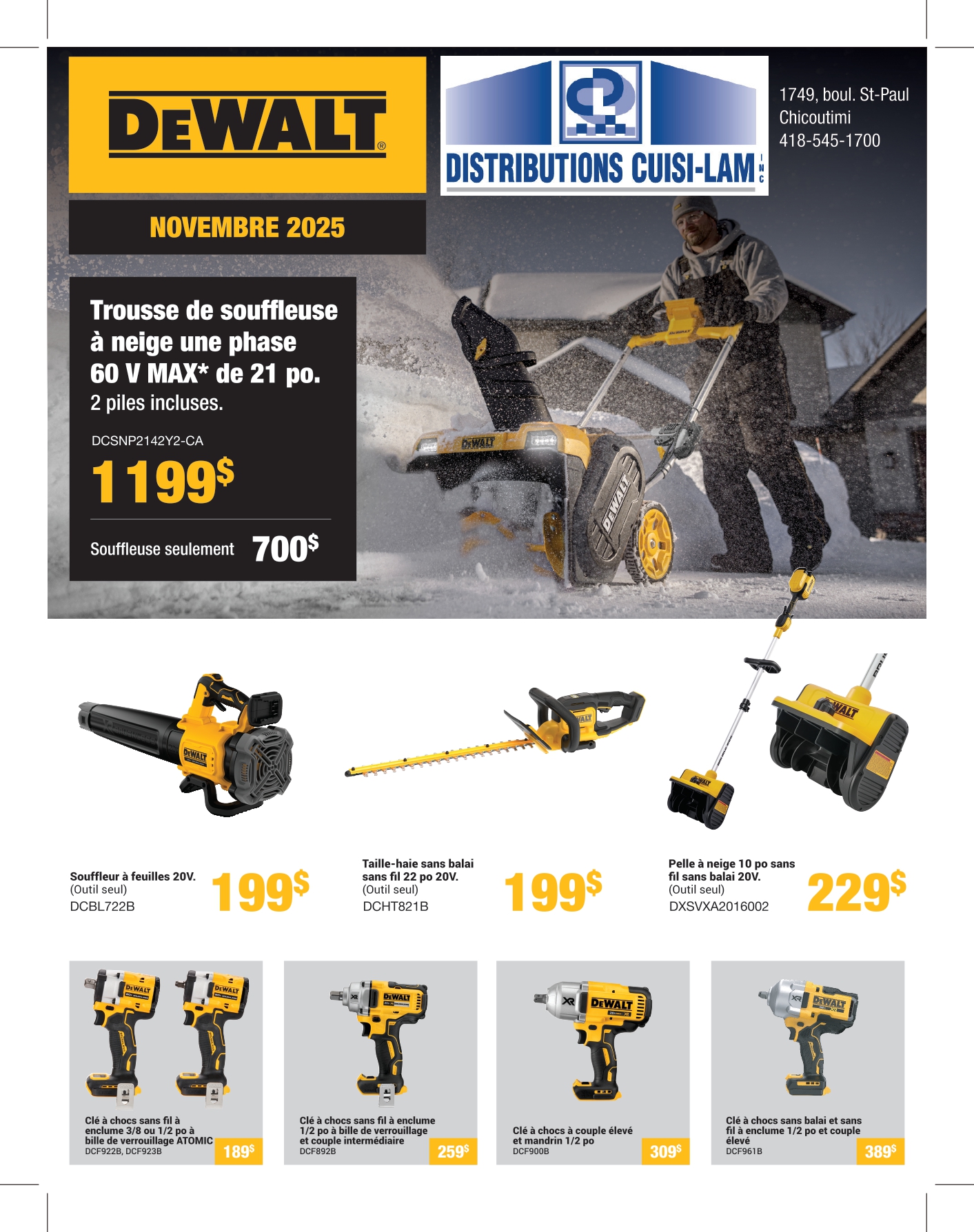 - Outils Dewalt , Stanley, Delta, Porter Cable , Topring, Bessey et Freud